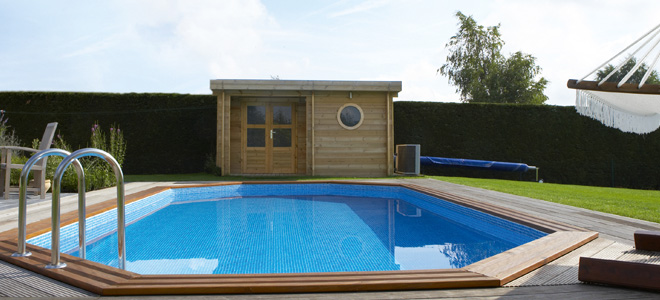 Madriers simple rainure et languette, 28mm d’épaisseur • Assemblage à mi-bois • Traitement autoclave • Fabrication des portes et fenêtres à tenons et mortaises • Quincaillerie de qualité, serrure à cylindre • OEil-de-boeuf fixe • Toiture plate recouverte d’EPDM • Sous-toiture en planchettes 17 x 95 mm • Baguettes de finition d’angle parois et plancher • Profils U extérieurs de finition en bout de madriers de parois • Poteau d’angle 12x12 avec platine réglable et cache-platine